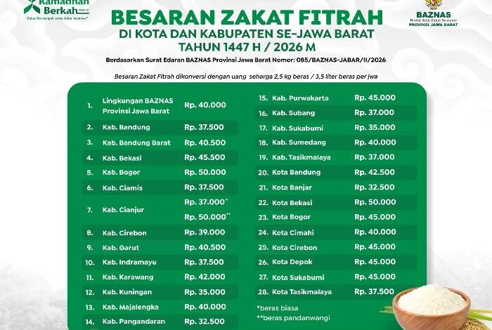Besaran Zakat Fitrah 1447 H/2026 M Se-Jawa Barat yang Resmi Diterbitkan BAZNAS Jawa Barat
