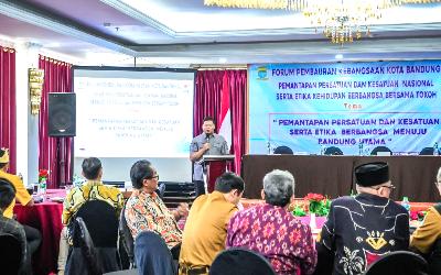 KET.FOTO: SEKRETARIS Komisi I DPRD Kota Bandung, Susanto Triyogo Adiputro, S.ST., M.T., menghadiri Sarasehan Forum Pembauran Kebangsaan dan Kesatuan Nasional…