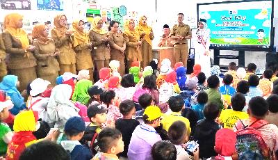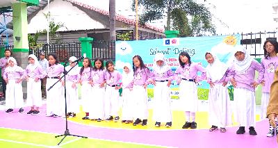 Beruntung, setelah hujan reda, cuaca cerah menyambut. Tim Sekolah, segera memindahkan kegiatan ke lapangan agar siswa bisa lebih leluasa.