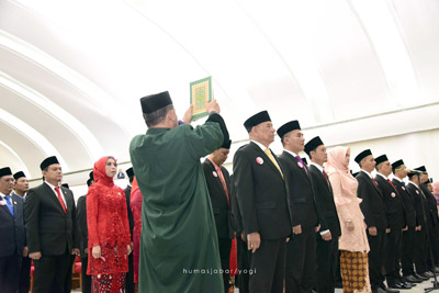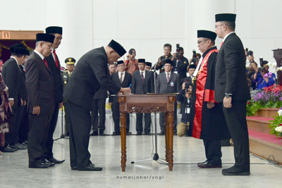 Pengucapan Sumpah/Janji dipandu oleh Ketua Pengadilan Tinggi Jawa Barat. Didampingi masing-masing pemuka agama. Selesai pembacaan sumpah, acara dilanjutkan dengan penandatanganan berita acara oleh masing-masing perwakilan.