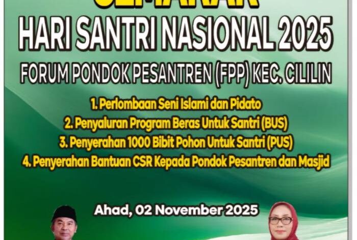 CILILIN, KABUPATEN BANDUNG BARAT, BEREDUKASI.COM — DALAM rangka memperingati “Hari Santri Nasional 2025”. Forum Pondok Pesantren Kecamatan Cililin, akan melaksanakan kegiatan Apel Santri, Ragam Perlombaan. Serta program Bantuan Swadaya untuk Santri dan Pondok Pesantren.
