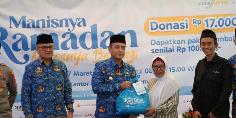BEREDUKASI,BANDUNG — Wakil Wali Kota Bandung, Erwin mengapresiasi kegiatan donasi Rp17.000 dapat sembako seharga Rp100 ribu yang digelar PT Value Stream Group, di Kantor Kecamatan Cibeunying Kidul, Senin 17 Maret 2025.