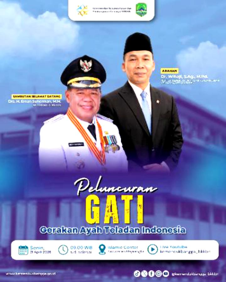 MAJALENGKA, BEREDUKASI.COM — MENTERI Kependudukan dan Pembangunan Keluarga (Mendukbangga)/Kepala Badan Kependudukan dan Keluarga Berencana Nasional (BKKBN) Wihaji. Meluncurkan Gerakan Ayah Teladan Indonesia (GATI) di Islamic Center Majalengka, Jl. Siti Armilah, Majalengka, hari ini Senin, 21 April 2025. Bupati Majalengka Eman Suherman dan unsur Forum Komunikasi Pimpinan Daerah (Forkopimda) Kabupaten Majalengka, teragendakan turut menghadiri peluncuran Gerakan nlNasional yang diikuti secara Hybrid seluruh Perwakilan BKKBN Provinsi Se-Indonesia tersebut.